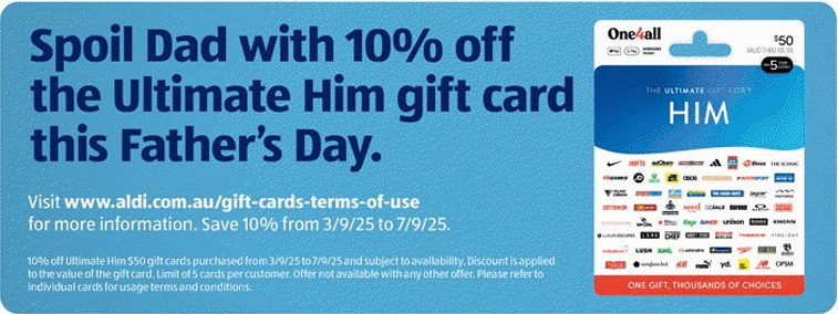 Aldi: $50 Ultimate Him Gift Card, now $45 (10% Off)