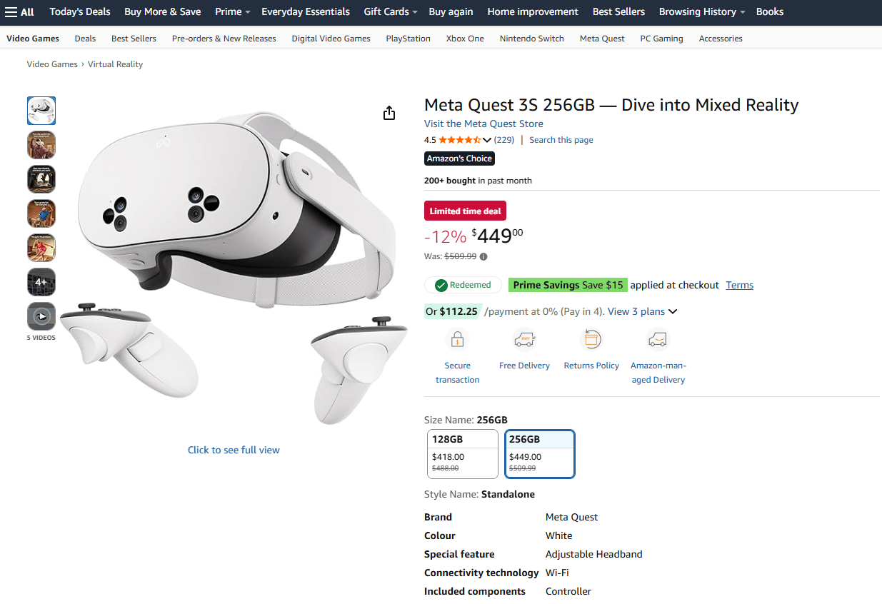 Save $60 on the Meta Quest 3S VR headset – down from $509 to $449 at Amazon.