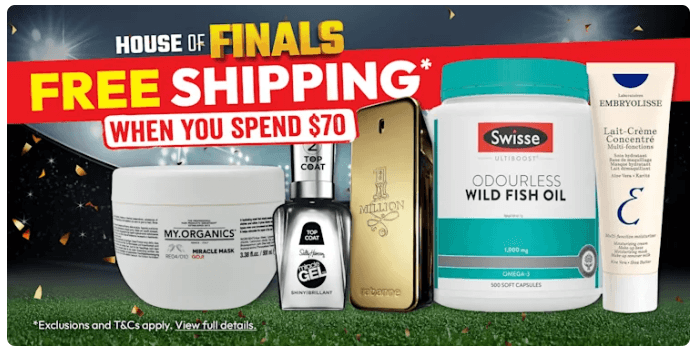 Free domestic shipping at Chemist Warehouse for orders over $70. No code needed, it just applies automatically at checkout.