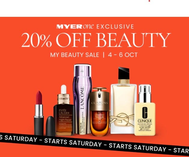 Myer’s got a 20% off beauty sale running 4 Oct to 6 Oct, the Labour Day long weekend. This is for MyerOne members, but, it’s pretty easy to sign up.
